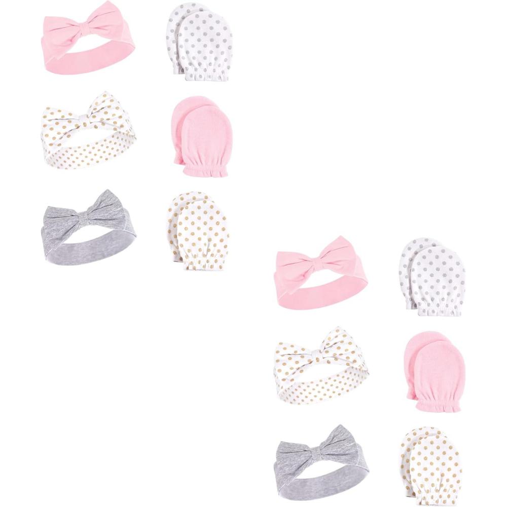 Hudson Baby Baby Girls’ Cotton Headband and Scratch Mitten Multi-pack Set(Dots 12-piece)