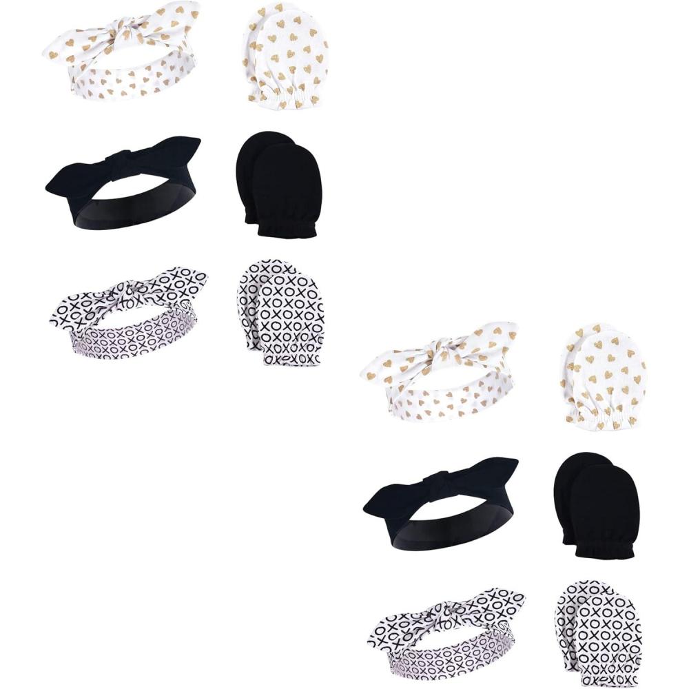Hudson Baby Baby Girls’ Cotton Headband and Scratch Mitten Set(Black Xoxo)