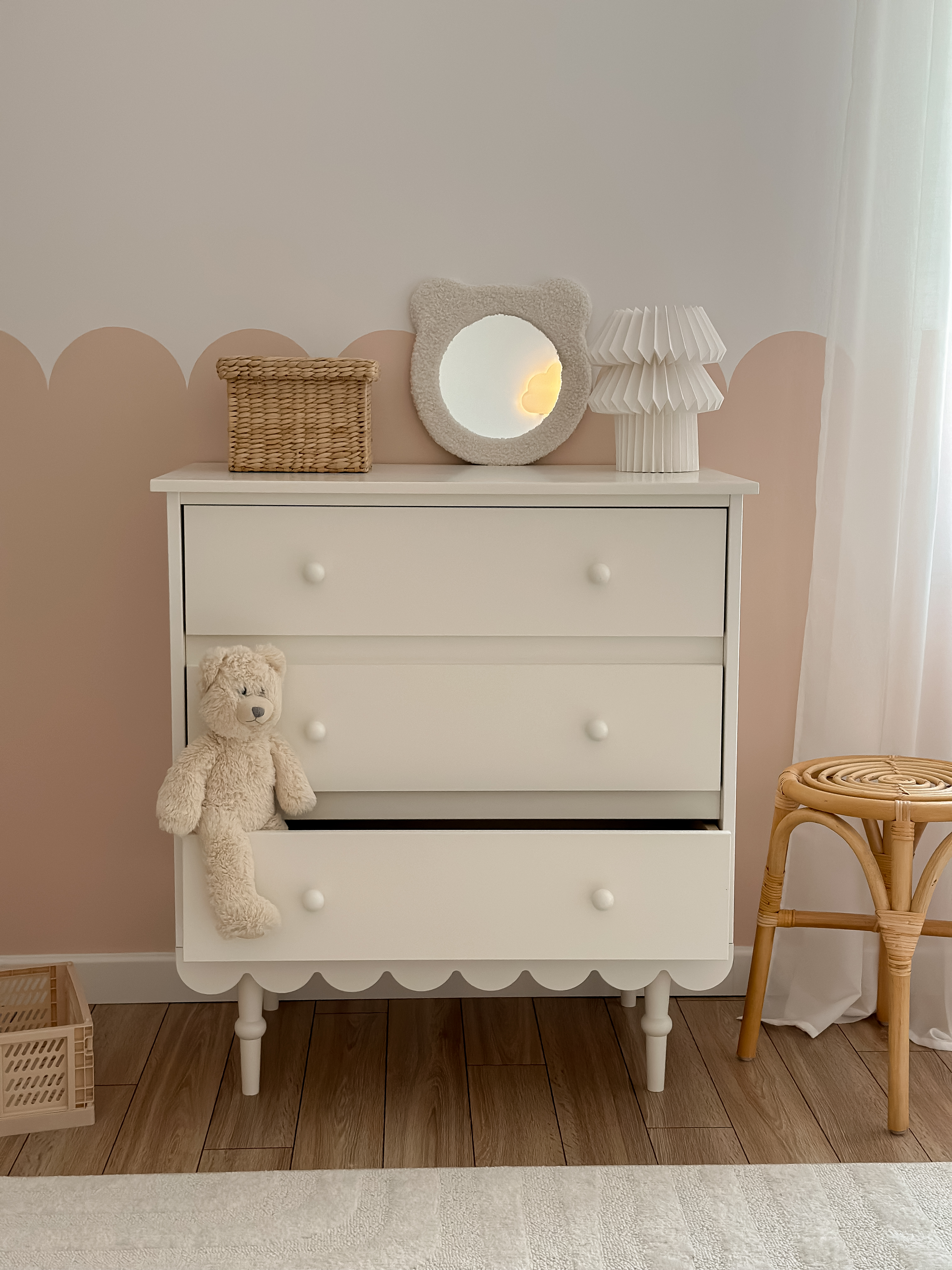 Commode à trois tiroirs rose