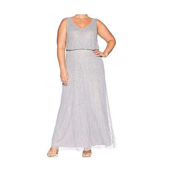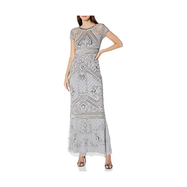 Adrianna Papell Women’s Cap Sleeve Fully Beaded Gown, Sterling, 6
